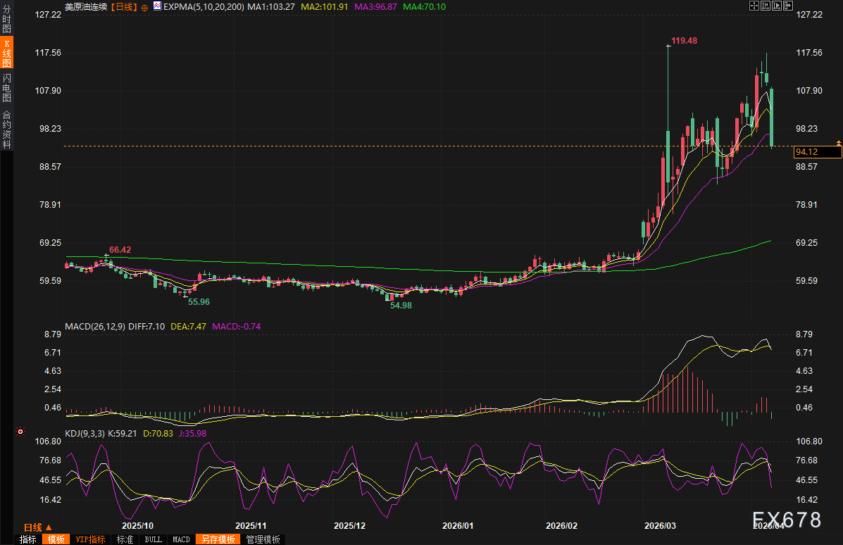特朗普宣布停火的消息一经发布,市场对中东地缘政治风险的担忧情绪快速降温。国际油价应声大幅跳水,截至周三早上07:15,美原油一度失守100美元重要心理关口,刷新三个交易日低点至92.52美元/桶,最大跌幅扩大至18%,较周二结算价下跌逾20美元。这一跌幅不仅反映了市场对供应中断风险的缓解,也直接缓解了全球通胀压力。