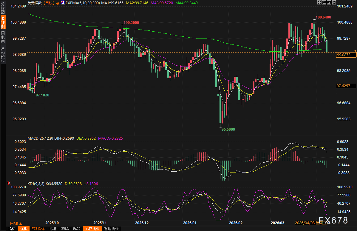 当地时间周二晚间,就在美东时间最后期限即将到来之际,美国总统特朗普在社交媒体“真相社交”上突然发文,宣布同意暂停对伊朗的轰炸与军事打击行动,为期整整两周。这一重磅消息犹如一颗“和平炸弹”,迅速打破了市场对中东紧张局势的担忧情绪,全球金融市场随之剧烈波动。周三(4月8日)亚市早盘,油价在短短时间内大幅跳水逾20美元,黄金价格则强势反弹逾2%,刷新逾两周高点。整个市场情绪从紧张避险迅速转向风险偏好,美元指数也明显回落,创下逾两周新低。
